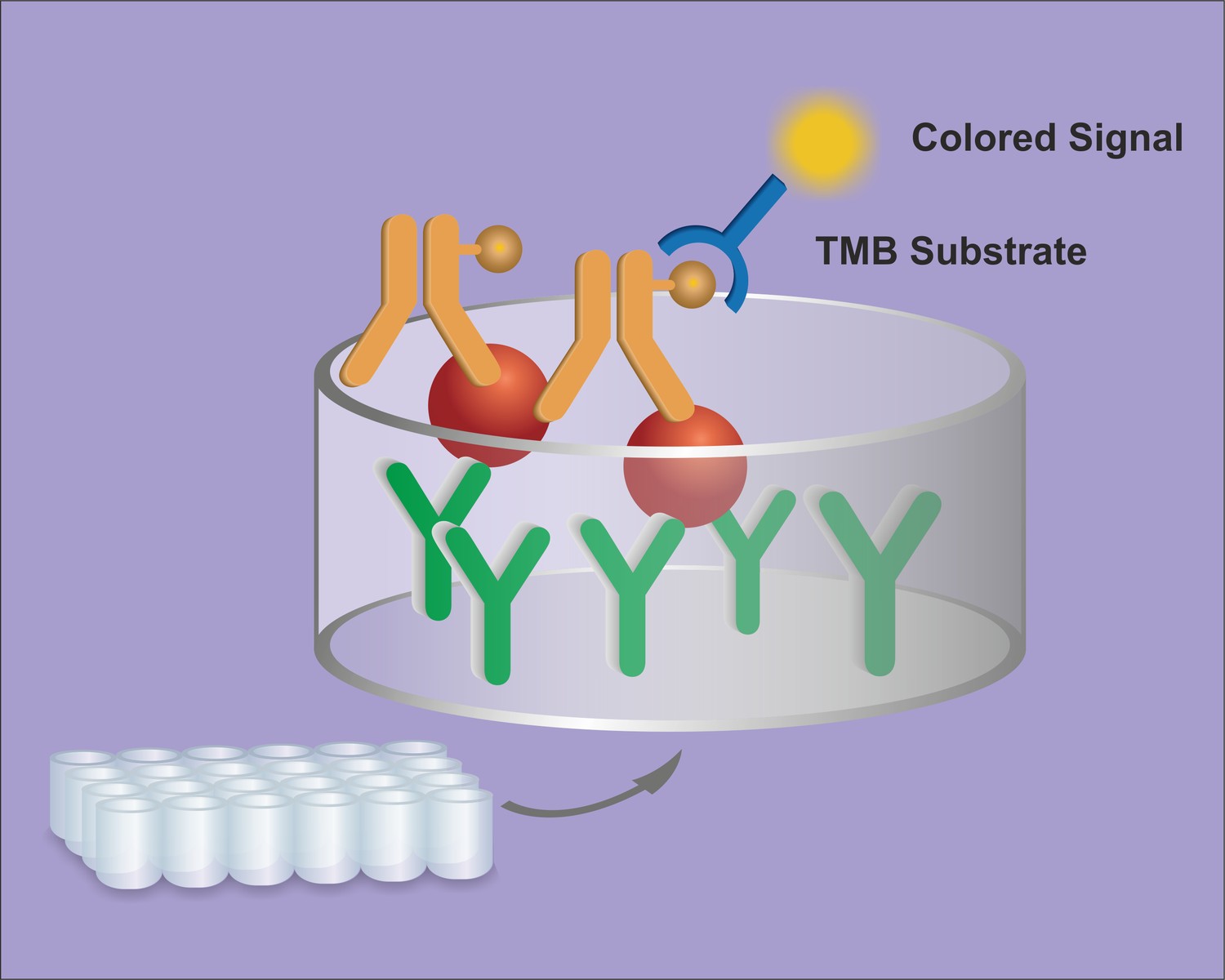 Enzyme-Linked Immunosorbent Assay (ELISAs) or Enzyme Immunoassay (EIAs) is a biochemical procedure using a microplate format in which a colored signal produced by an enzymatic reaction is used to detect and quantify the amount of a specific protein in a solution. Enzyme-linked immunosorbent assays (ELISAs) typically are used to detect antigens, though they can also be used to detect other substances, including antibodies and hormones.